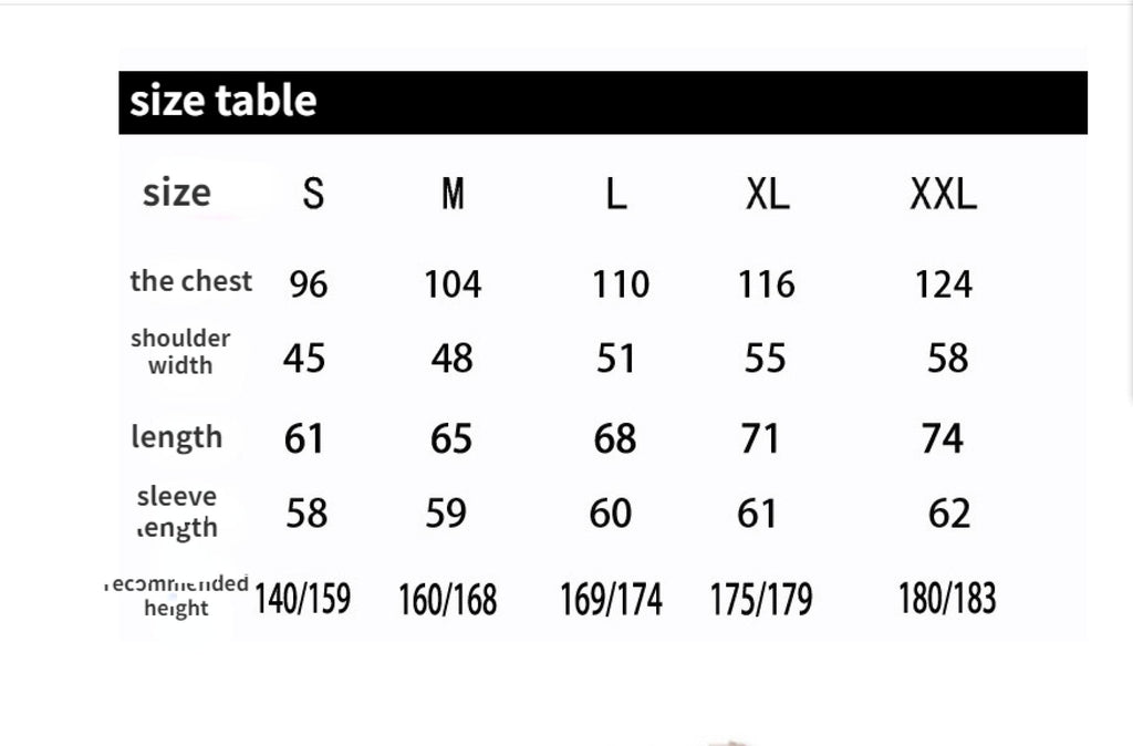 XS, S, M, L, XL, XXL