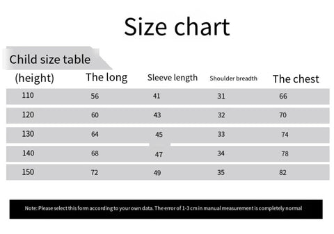 XXL, XXXL, child 110, child 120, child 130, child 140, child 150