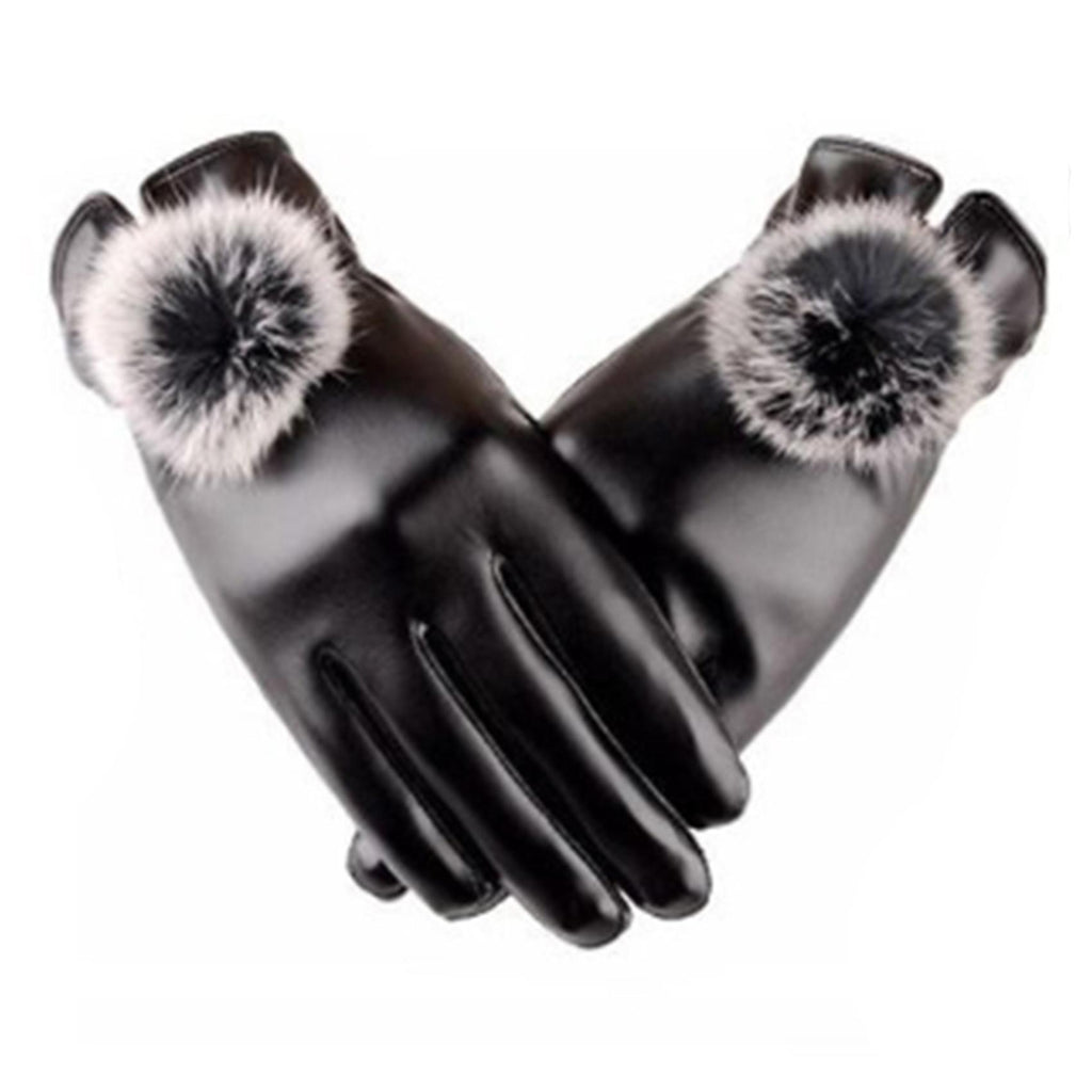 PU leather winter ladies gloves plush warm touch screen unisex driving gloves full finger motorcycle men's mittens