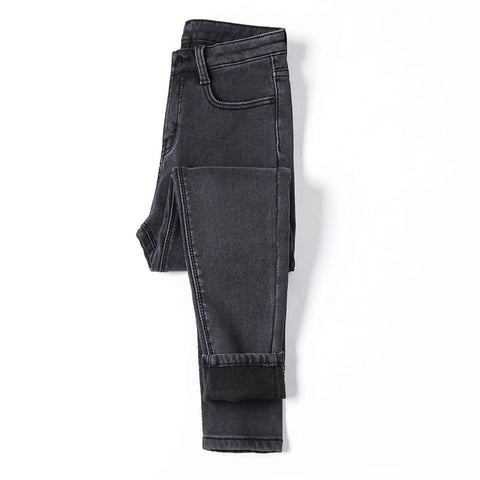 Large size 26-40 winter women Colorful plus velvet high waist jeans denim trousers stretch warm pencil pants thick skinny jeans 36 Blackvelvet